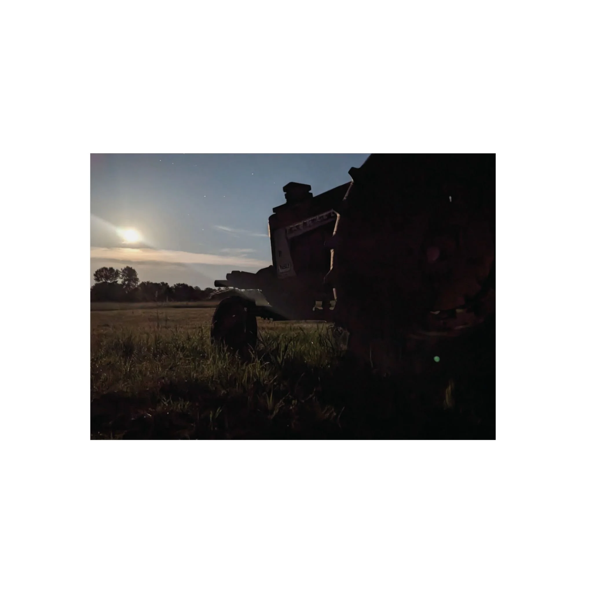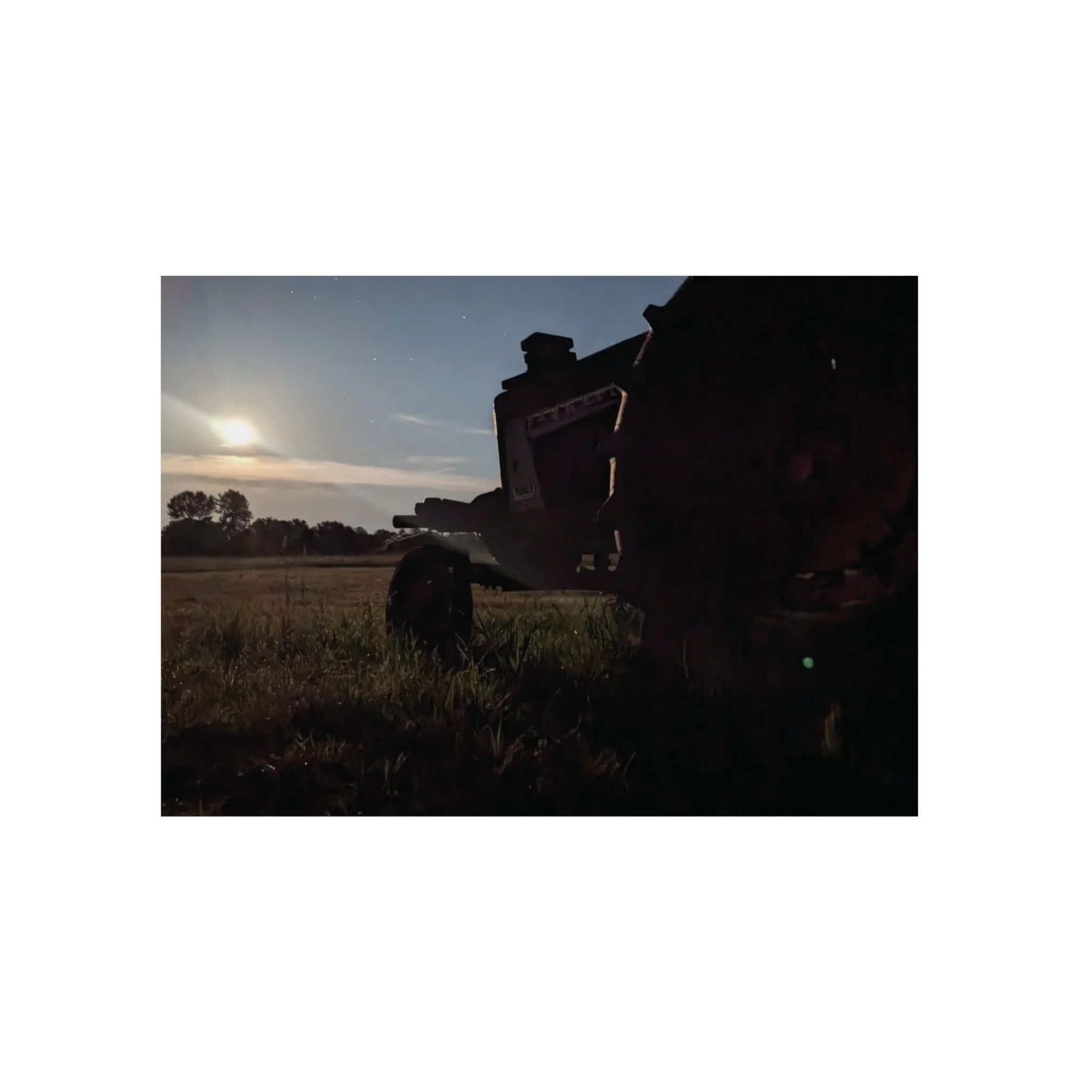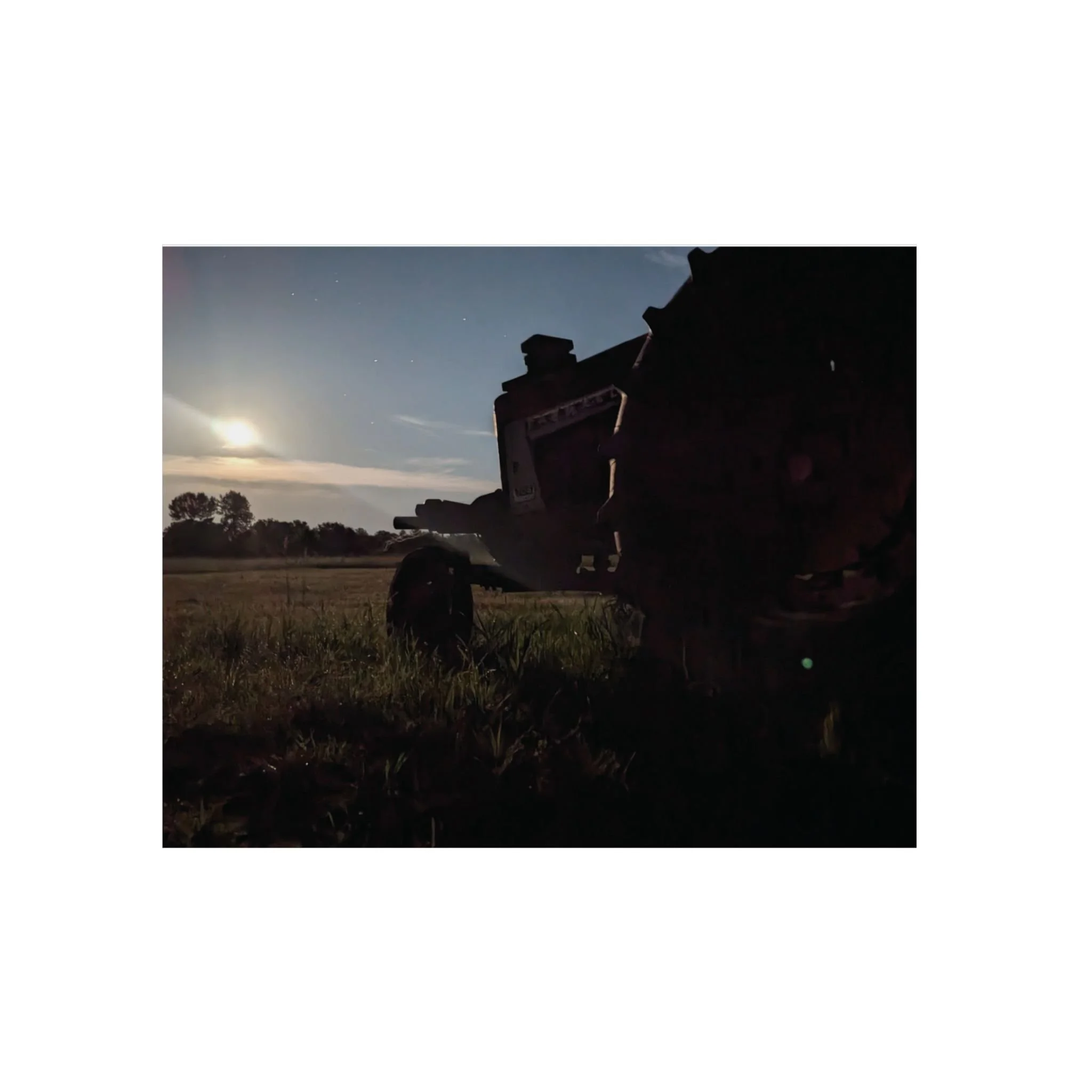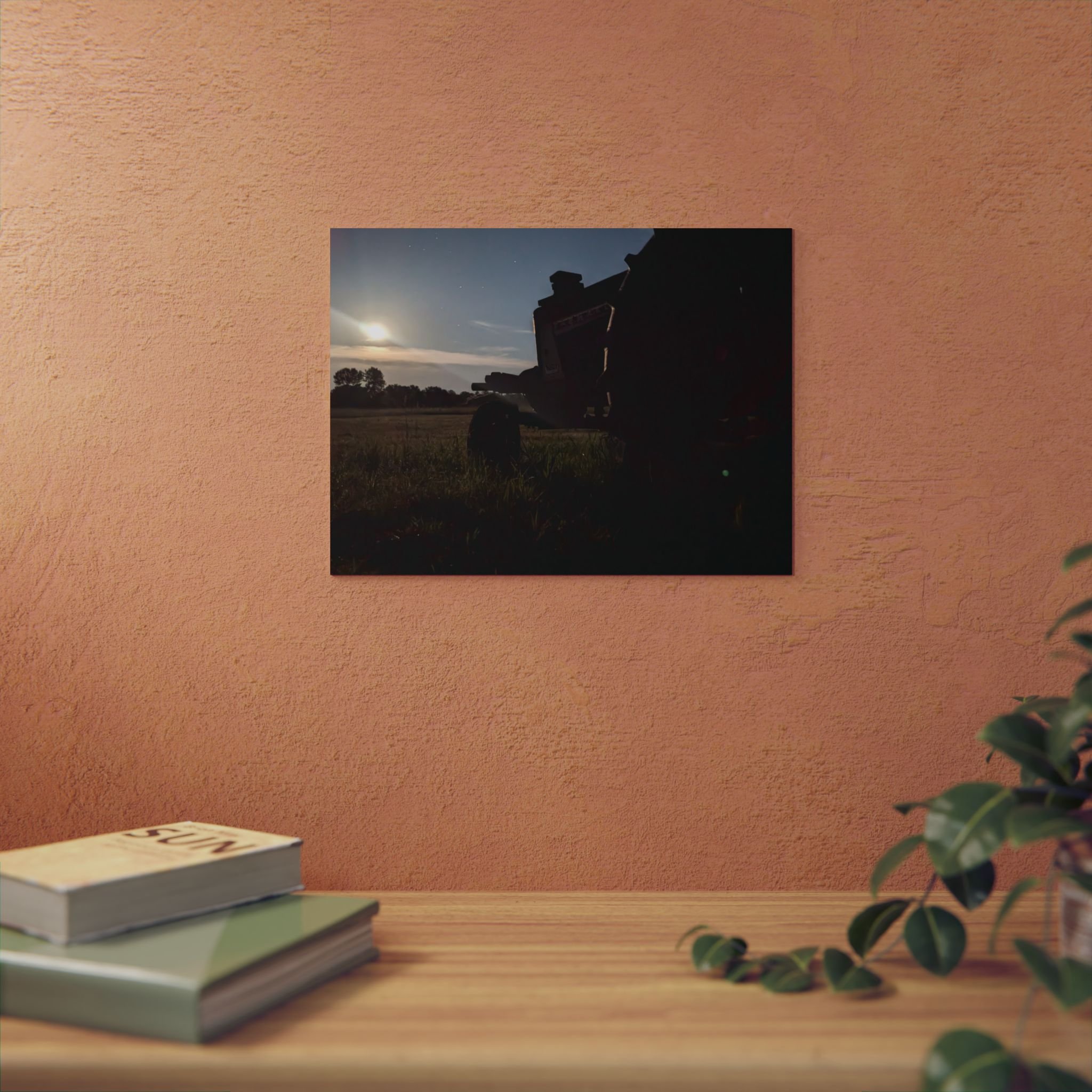 A lightweight, weather-ready wall panel that keeps the moody depth and rich contrast of your photograph intact. The image — a low-slung sunset behind farm equipment — comes through with vivid, crisp tones on a slim 3mm aluminum face that resists scratches, sun fade, and moisture. Each panel arrives with pre-mounted hanging hardware and bumpers, so it hangs flat against drywall or outside siding and holds steady whether placed horizontally or vertically. The matte finish tames glare so the scene reads well in dim home offices, entryways, or on a covered porch, preserving that late-evening hush wherever you display it.