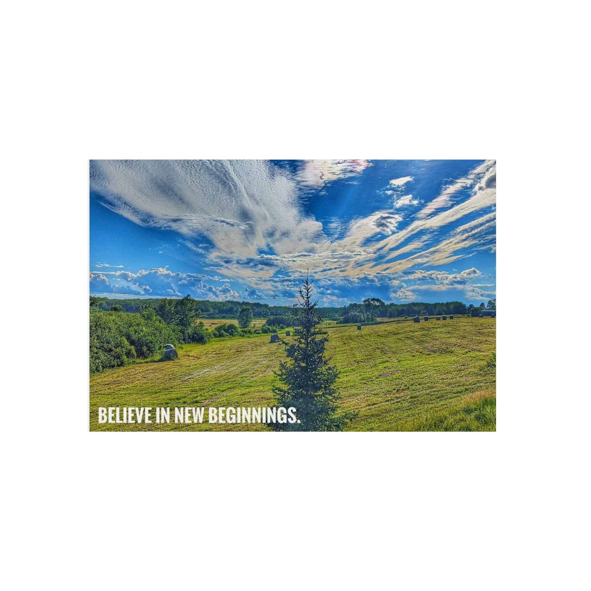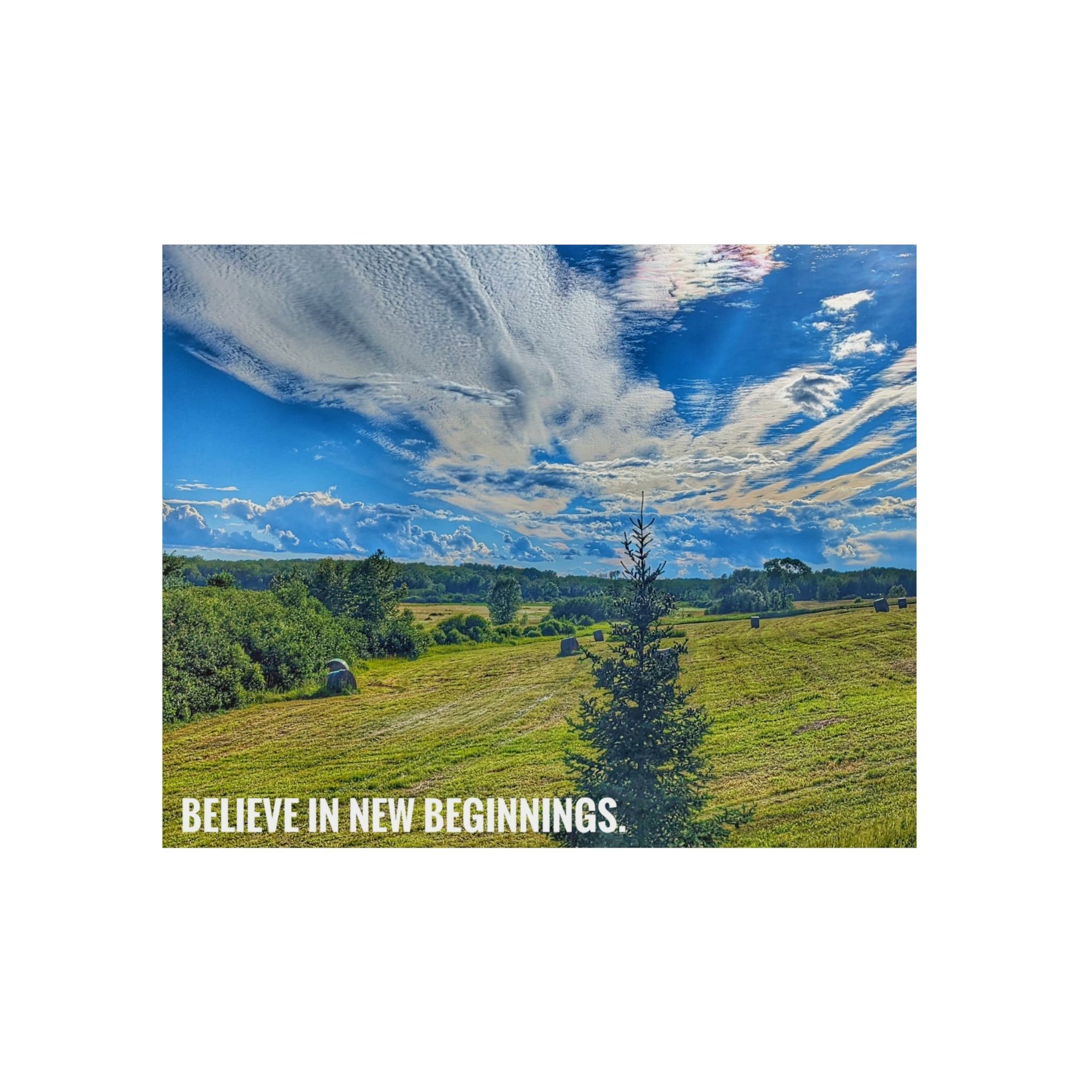 A lightweight, weatherproof wall panel that brings vibrant landscape photography to your space with a modern, ultra-slim profile. Printed on a 3mm aluminum composite surface, the image keeps crisp color and fine detail with a matte finish that reduces glare. Each panel ships with pre-mounted hanging hardware and protective bumpons so it sits flat and secure on the wall—perfect for creating an uplifting focal point in a home office, entryway, or outdoor-covered patio. The serene meadow scene and subtle “Believe in New Beginnings.” caption add quiet motivation and a fresh, hopeful atmosphere wherever it’s displayed.