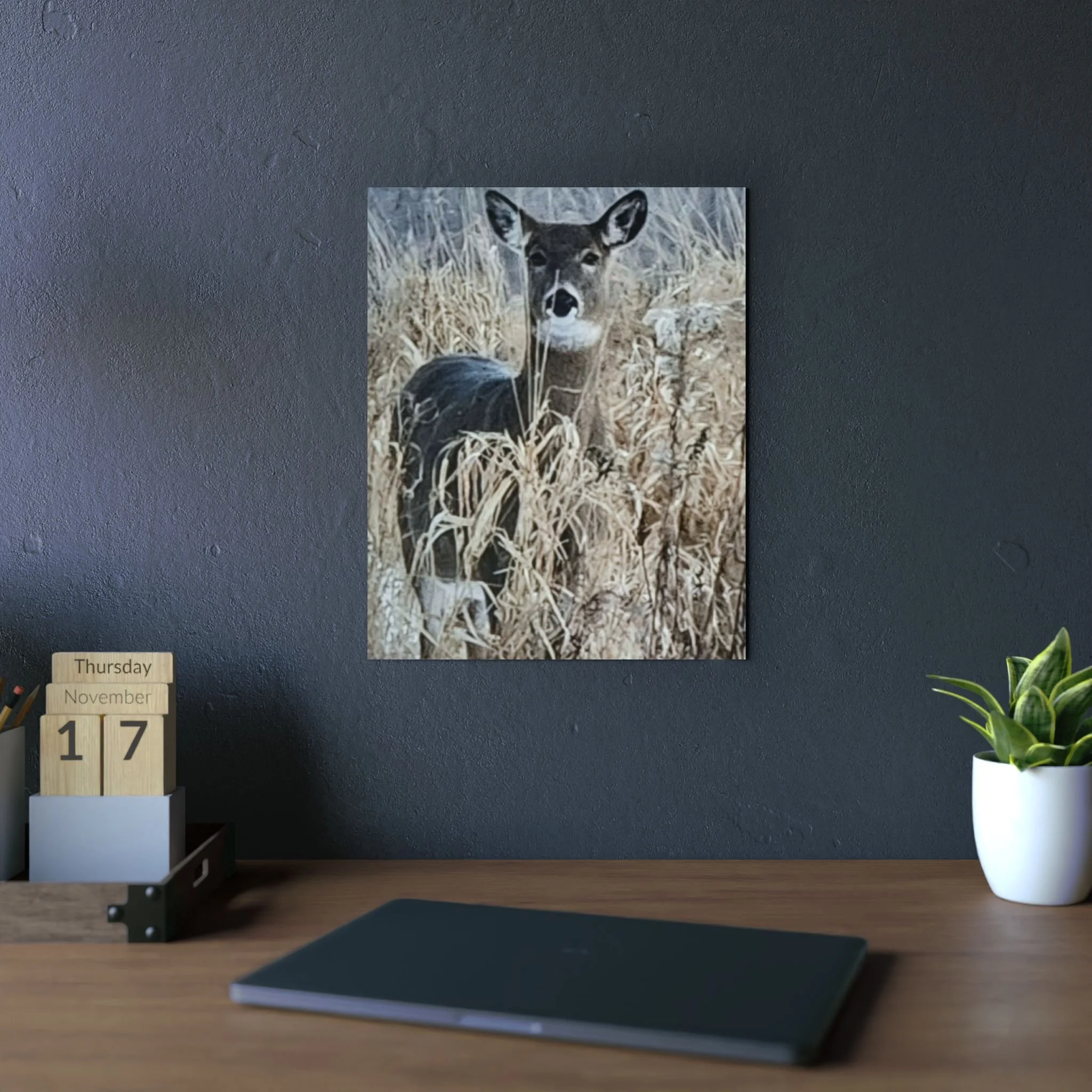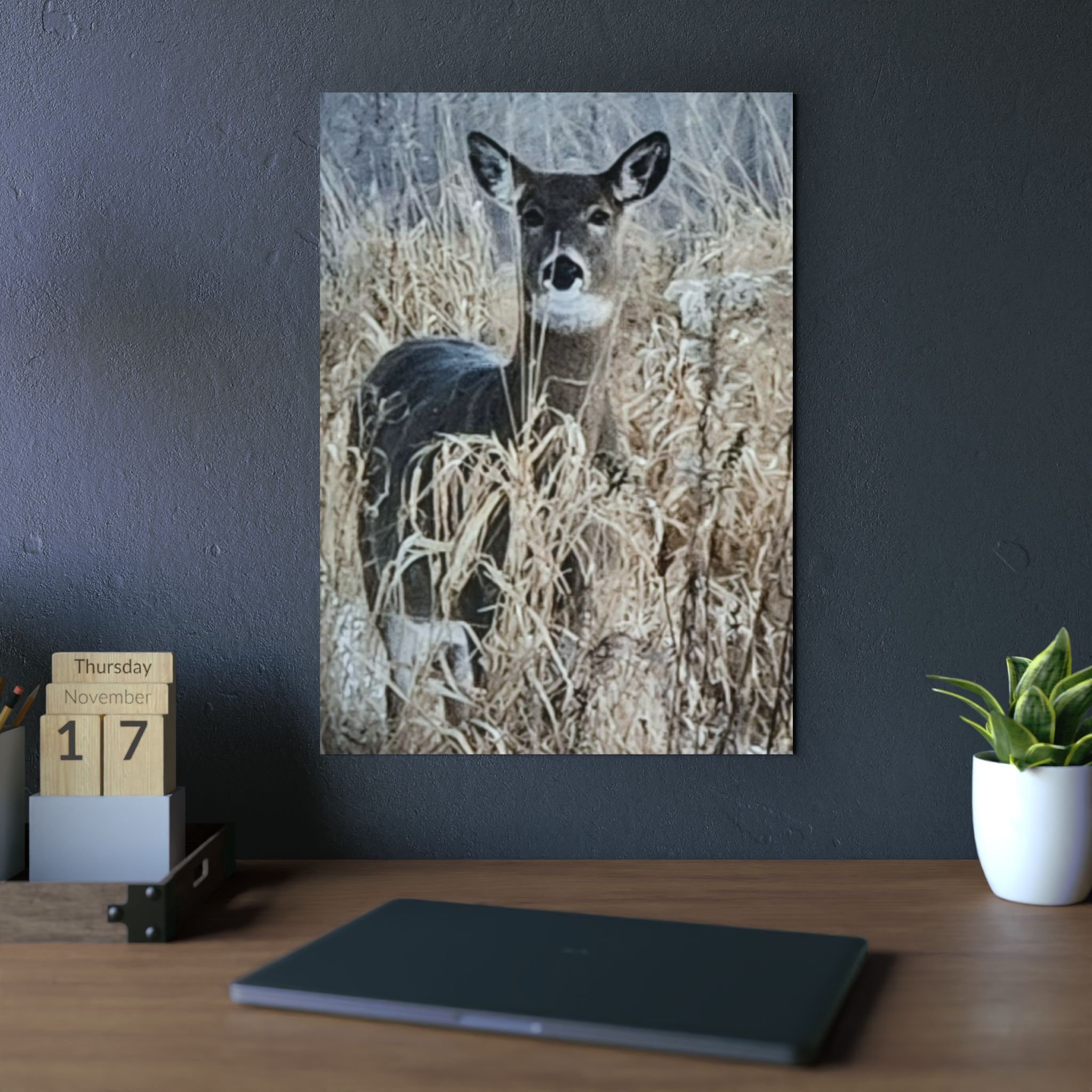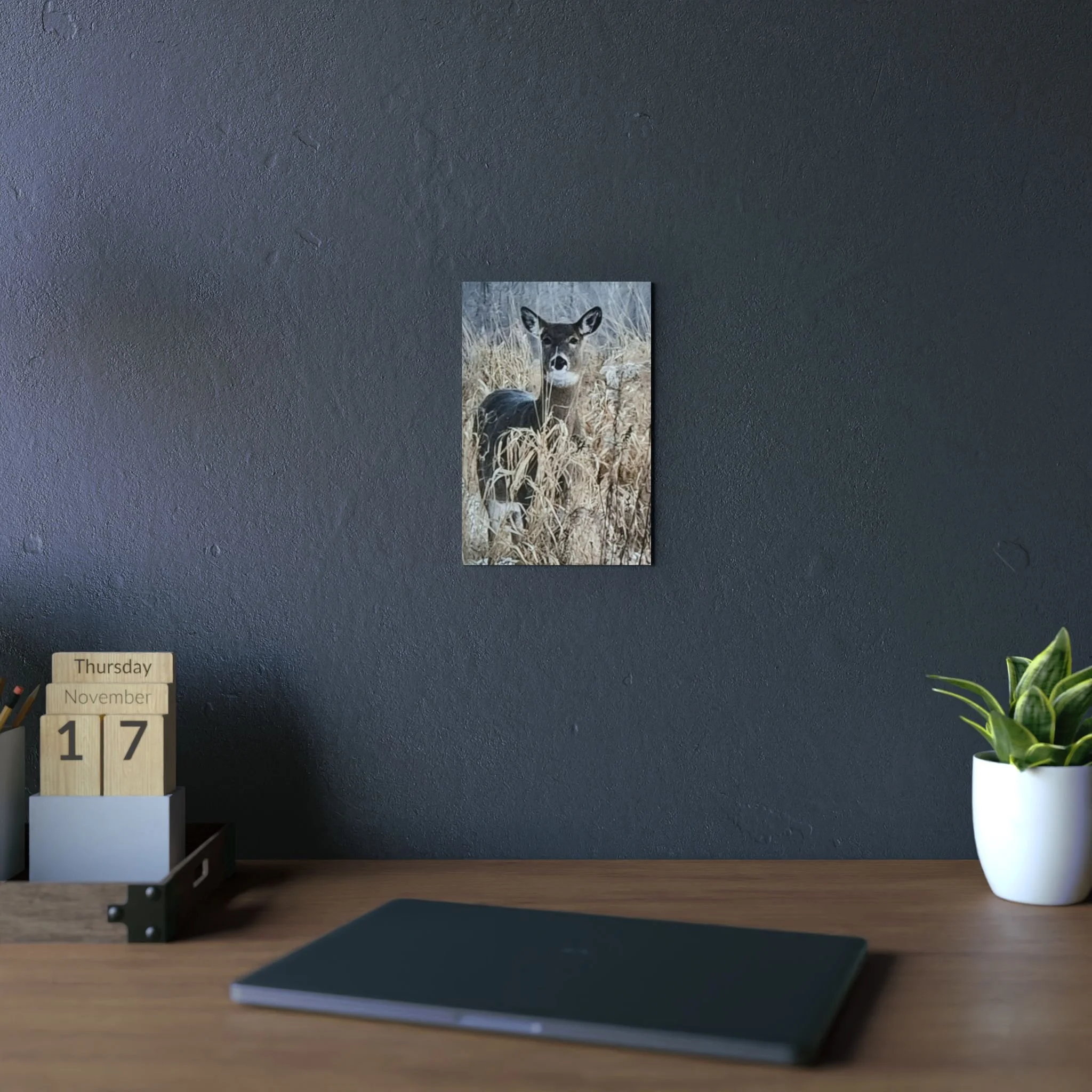 A quiet winter morning captured on sleek aluminum. This 3mm composite panel brings a lone deer into your home with vivid, matte-finished color and a subtle, museum-like presence. Lightweight but sturdy, it resists water, UV, and scratches so the scene stays true whether mounted in a cozy study, a screened porch, or an entryway that greets nature lovers. Arrives ready to hang with pre-mounted hardware and bumpers for a clean, floating look — vertical, seven sizes to choose from. Let the image settle into your space and invite a calm, woodland rhythm into everyday life.