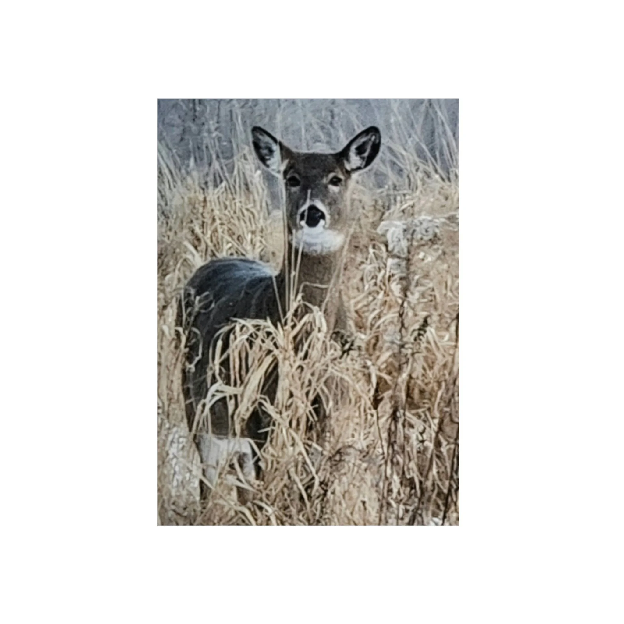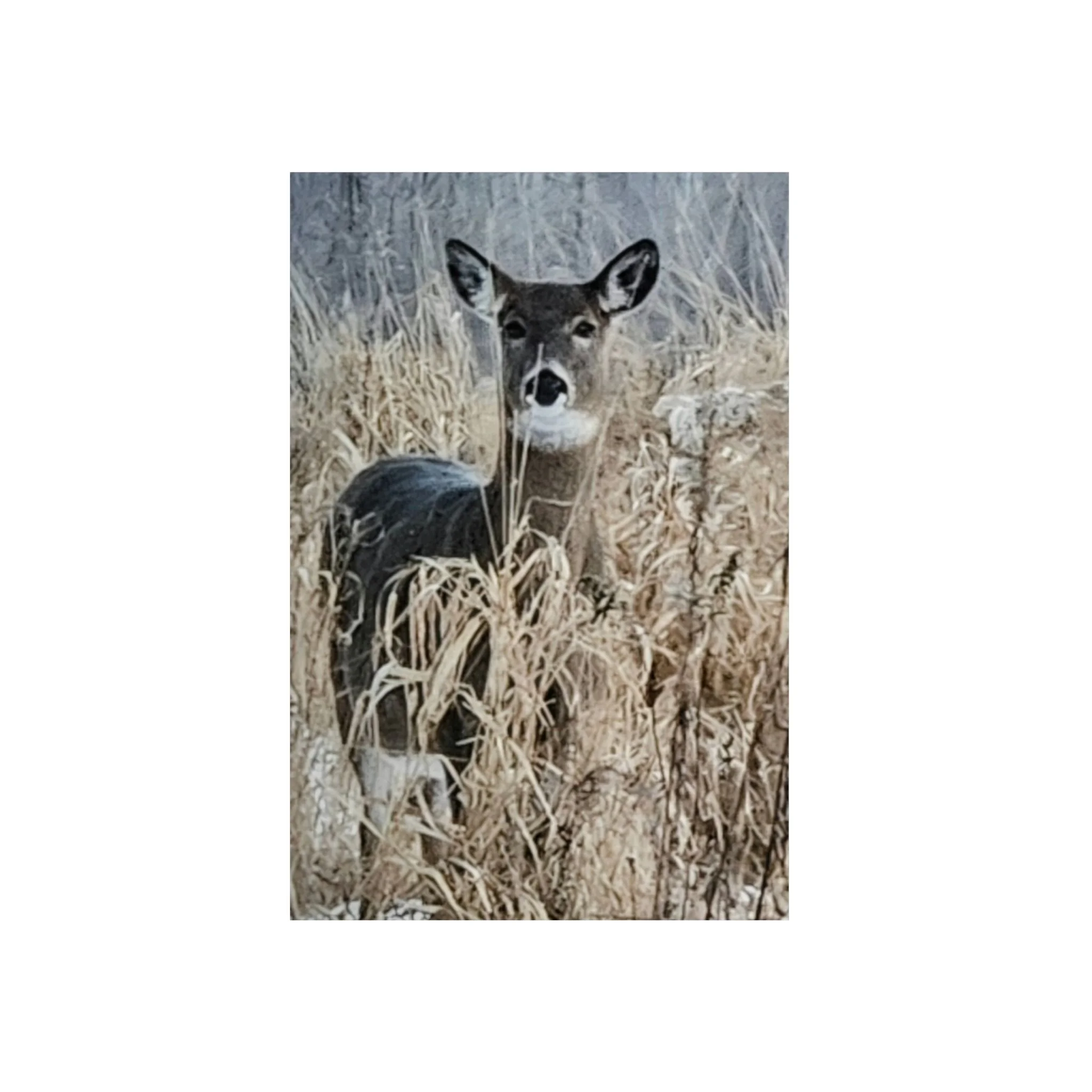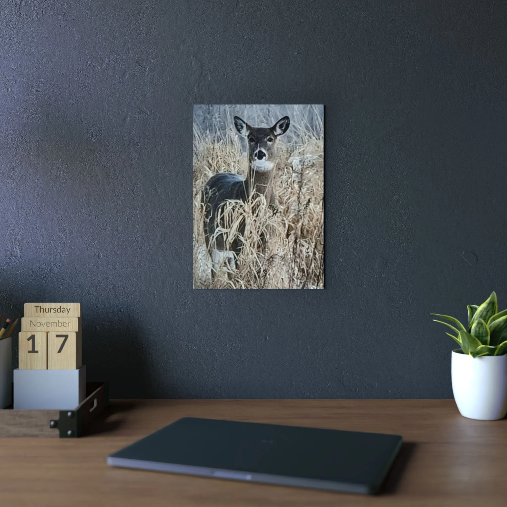 A quiet winter morning captured on sleek aluminum. This 3mm composite panel brings a lone deer into your home with vivid, matte-finished color and a subtle, museum-like presence. Lightweight but sturdy, it resists water, UV, and scratches so the scene stays true whether mounted in a cozy study, a screened porch, or an entryway that greets nature lovers. Arrives ready to hang with pre-mounted hardware and bumpers for a clean, floating look — vertical, seven sizes to choose from. Let the image settle into your space and invite a calm, woodland rhythm into everyday life.